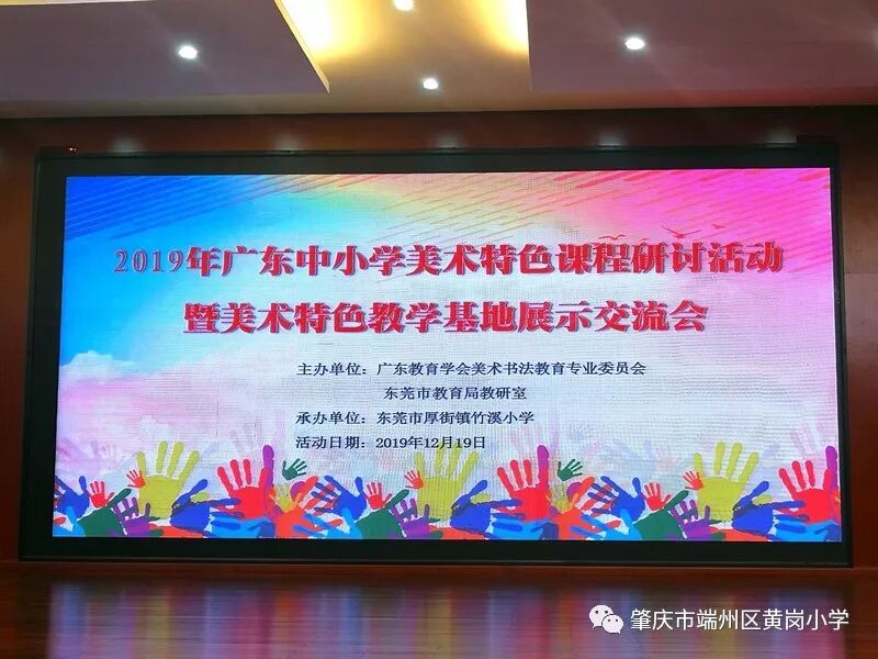 2019年12月19日,由广东教育学会美术书法教育专业委员会、东莞市教育局教研室主办的2019年广东中小学美术特色课程研讨活动暨美术特色教学基地展示交流会在东莞市厚街镇竹溪小学举行。