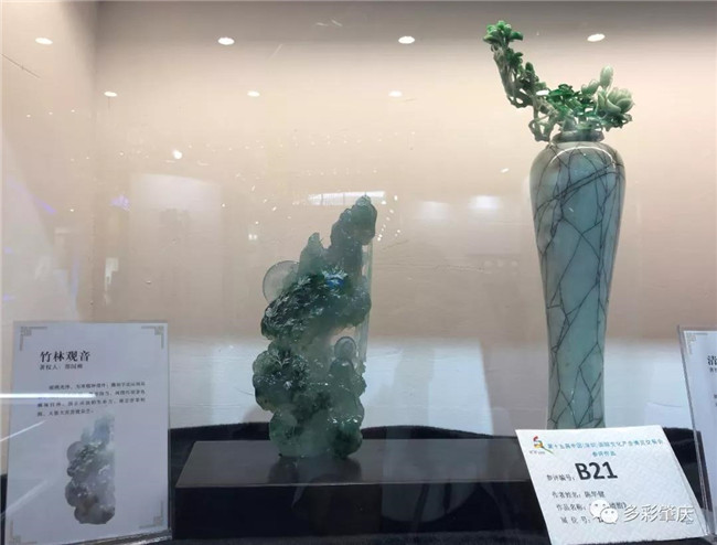 肇庆馆既展示了端砚、四会玉雕、广绿玉、剪纸等传统文化工艺品,也展示了以肇庆历史为灵感设计制作的仿古时钟、掐丝画等,也有端州裹蒸粽、月饼、德庆龙母茶等肇庆伴手礼。