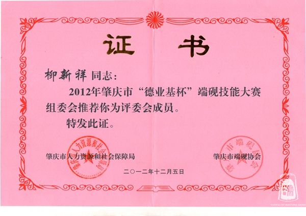 2012年担任德业基杯端砚技能大赛评委
