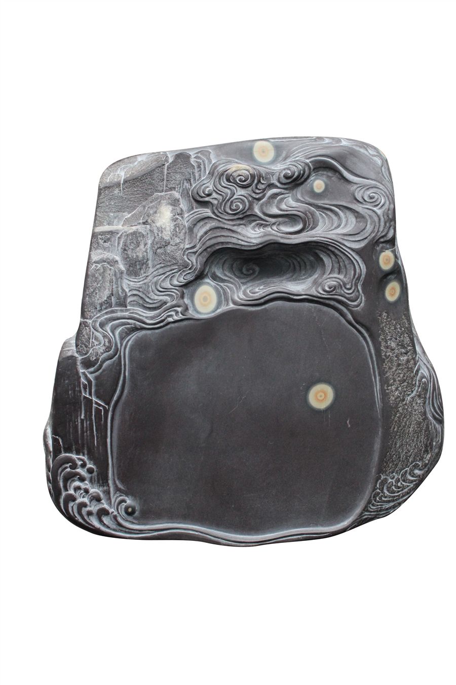通过优质坑仔岩,用云、水、山、人物之雕刻法,表达世间一切,与融为一体。此砚创意独特,构思精妙、新颖,是近年之优秀作品之一。