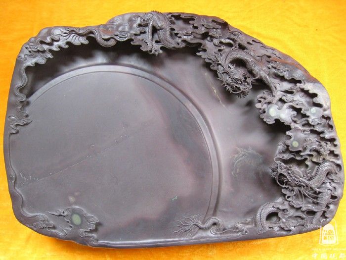 点评:此砚属“蔡家龙”之精品,不但承继“蔡家龙”的精魄神韵,而且刀法细腻,栩栩如生,古意隽永之余,尽脱繁缛匠俗之气,在客厅或是酒店等场合陈列最为合适,因为龙腾四海,寓意飞黄腾达。
