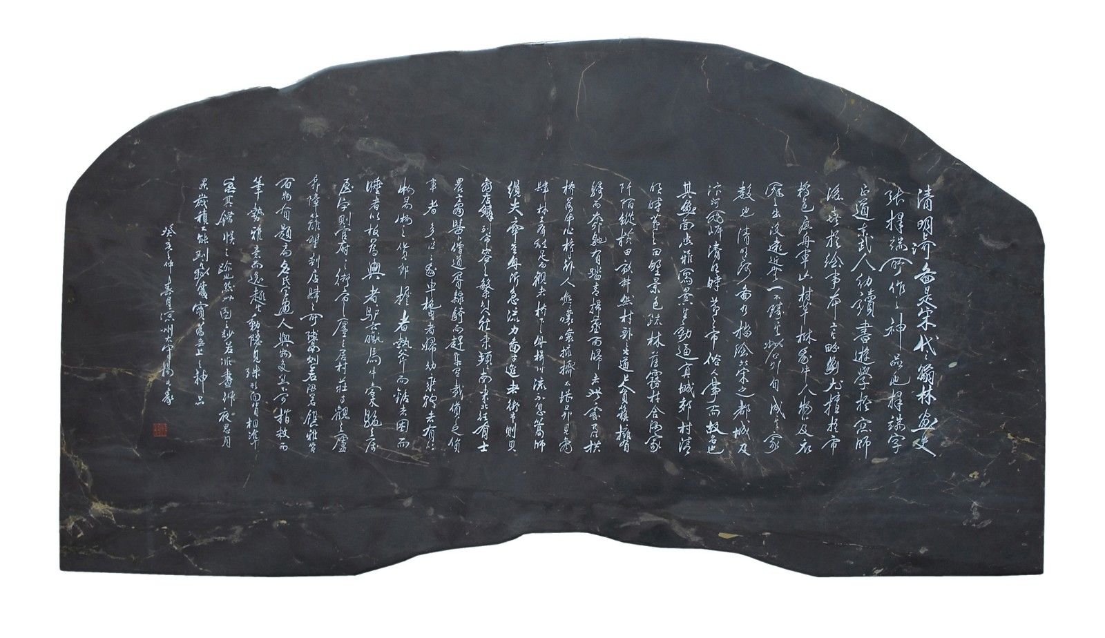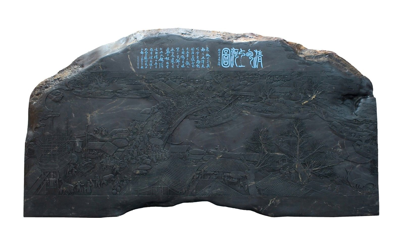 简介:该砚选取了《清明上河图》原幅画卷中最精彩的部分,整体采用浅雕手法,利用砚材中部的天青、火捺等纹路作为汴河,蕉叶白,脑冻、冰纹、金银线活化为汴河的波光粼粼,用石皮保留观石质感,用翡翠、玫瑰紫等融入画面各式人物和建筑,画中人物众多,衣着不同,神情各异,构图疏密有致,富有节奏感和韵律的变化,描绘了北宋京城繁华热闹的景象和优美醉人的自然风光。荣获2010年第25届全国文房四宝艺术博览会金奖。