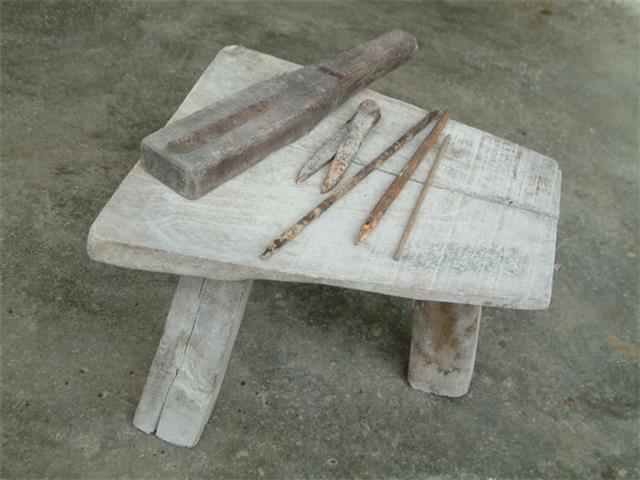 雕砚用的刻刀很多,大致上分平口刻刀和圆口刻刀两种,此外还有木槌和铁槌等辅助工具。刻砚的步骤是首先进行粗刻和雕刻墨堂,然后才进行细刻精雕。粗刻是将图饰刻成一个大体的轮廓,细刻就是将图饰的轮廓进行精刻并最后成型。