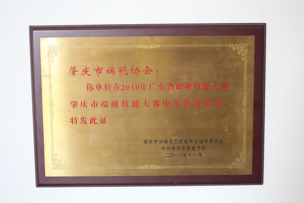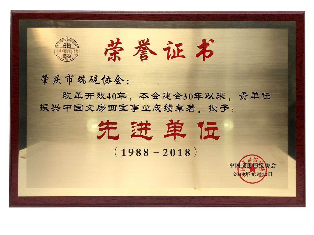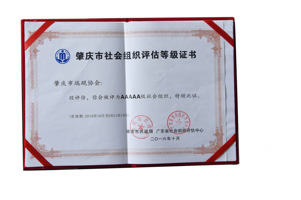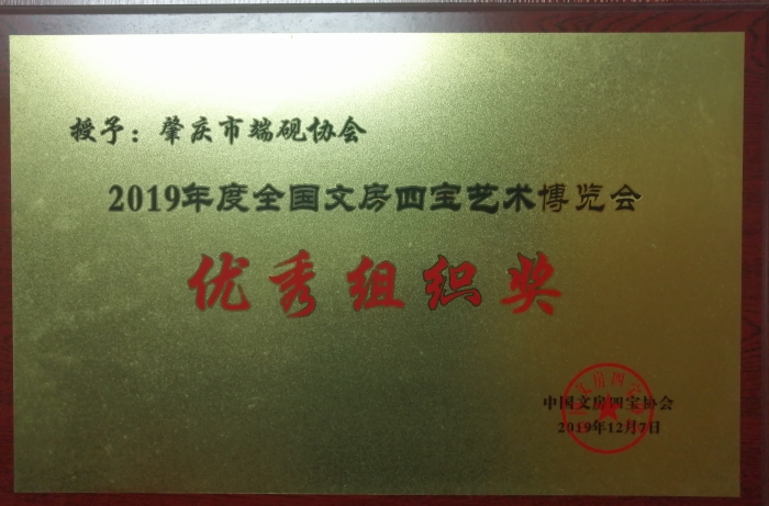 肇庆市端砚协会先后被评为培养高技能人才先进单位,获得“肇庆市端砚技能大赛优秀组织奖”、2013年“第三届中国(肇庆)端砚文艺节优秀组织奖”、“肇庆市2010—2011年度文艺精品创作组织奖”、“肇庆市2012—2013年度文艺精品创作组织奖”等荣誉称号,2016年被评为“肇庆市AAAAA级社会组织”,2019年获振兴中国文房四宝事业先进单位。
