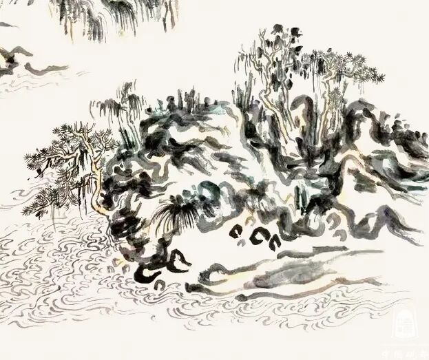 又比如《水月云岩》,此幅构图,虚大于实。所谓:“云飘万里风不止,山林映霞光恒生。”画面中那淡淡几笔,让云动起来了,衬托出山川凌云的飘的意境。大道至简,空濛气韵,一派生机勃勃。