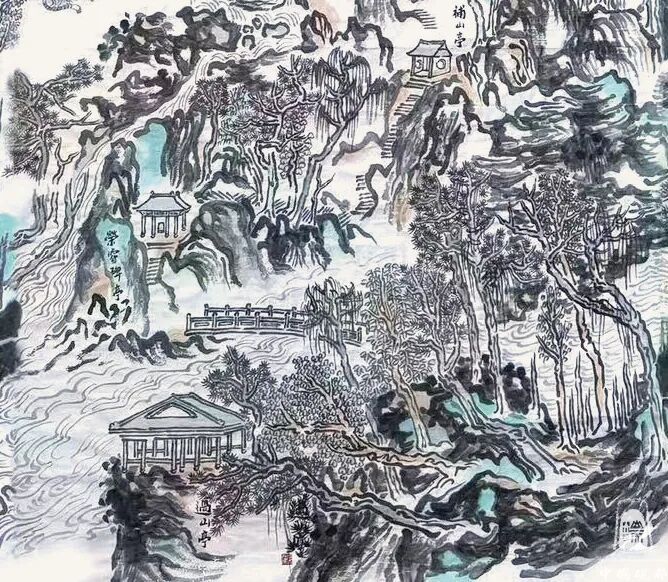 如果说,自然能升华造化,是创作者自我升华的最佳路径。写生也好,主观创作也罢,山水画的丰富是自然带来的,也是自己带来的。所谓画山水画,无不是心灵觉悟时的瞬间美妙,造山造水,一定会让这个世界由内而外地突显出它的最佳表现,其难度就在于集古、集今、集外相、集内涵为一体,才能写出一幅一幅精彩美妙的作品。
